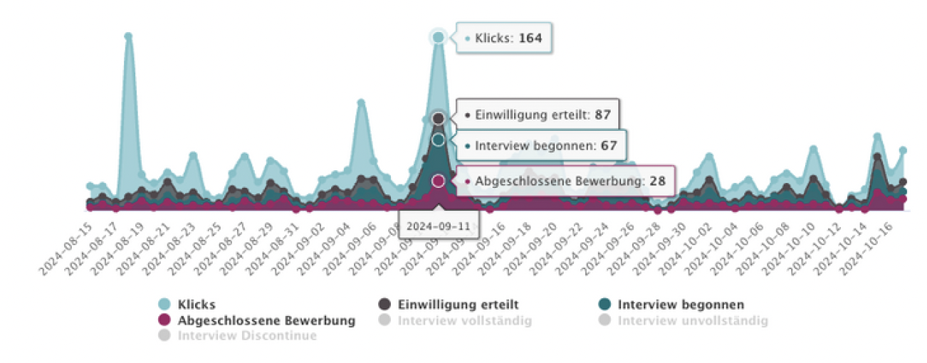 - Zeitverlauf der eingehenden Bewerbungen mit Peaks & Einbrüchen.