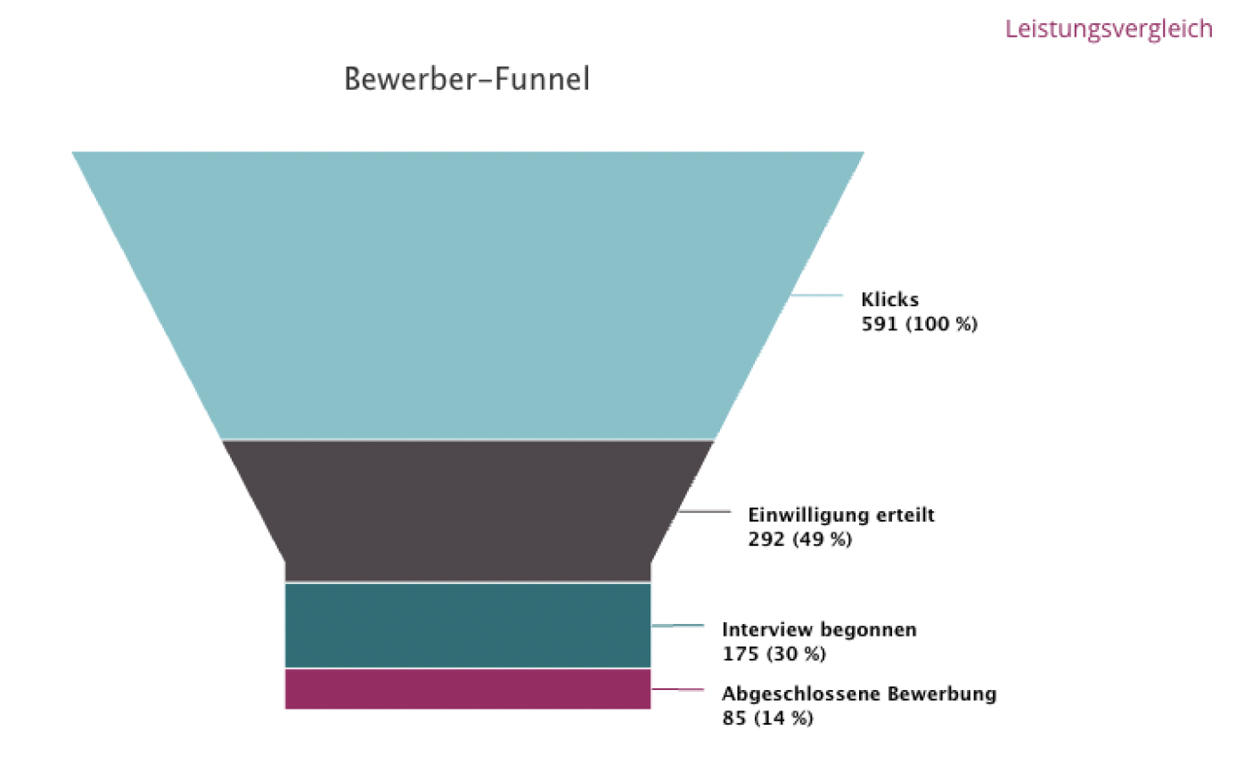 - Conversion Rate: Anteil von Interview begonnen zu abgeschlossene Bewerbung. Durchschnittlich ca. 82 % (Richtwert).