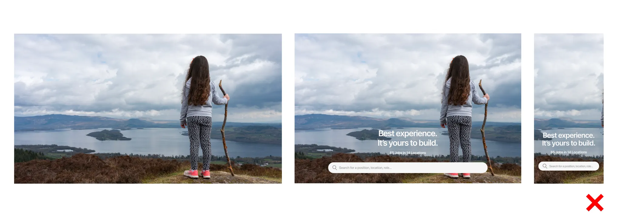 Diese Vorgehensweise berücksichtigt das responsive Verhalten der Seite (unterschiedliche Bildschirmgrößen, Zuschnitte, Seitenverhältnisse) und sorgt dafür, dass Personen und zentrale Inhalte auf Desktop, Tablet und Mobile stets gut sichtbar und im Fokus bleiben.