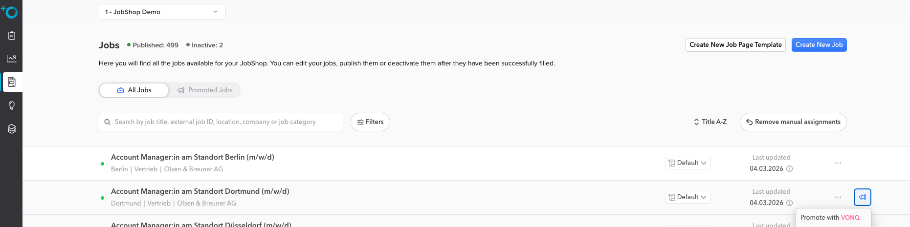 Schritt 1 – Den „Promote with VONQ"-Button finden